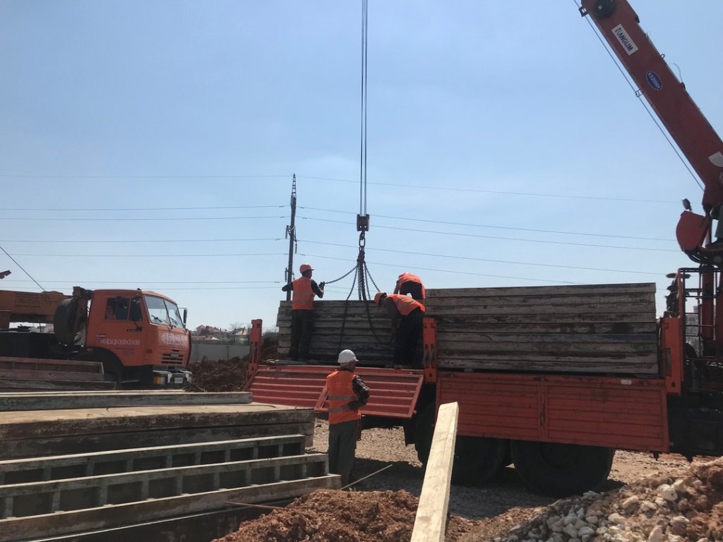 На данный момент на объектах ведутся строительно-монтажные работы. В частности, устанавливаются железобетонные конструкции цокольных этажей, а также прокладываются временные инженерные сети.